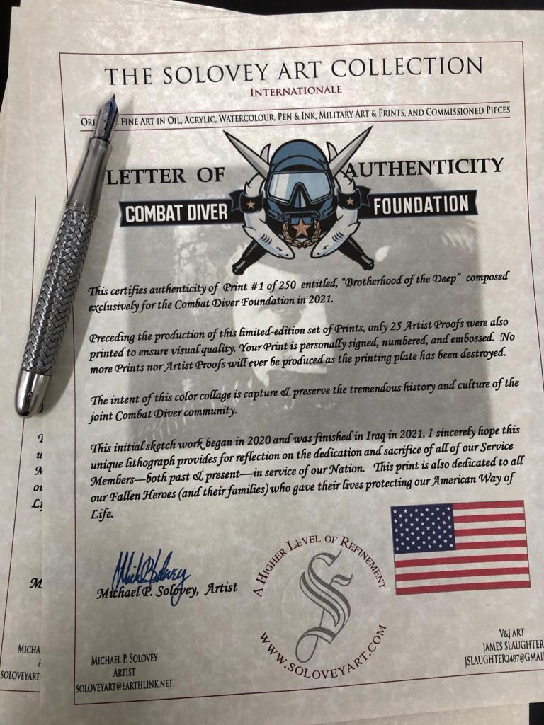 Preserve the history of the Combat Diver community with this commemorative print by noted military artist Michael Solovey (www.soloveyart.com).
