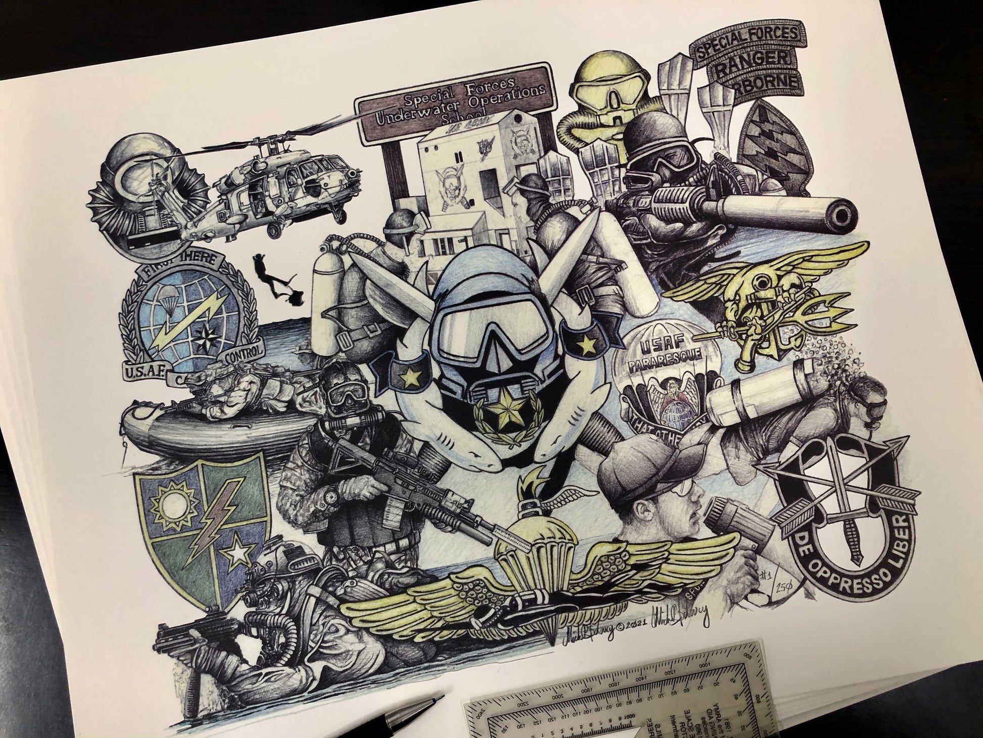 Your print will come serial-numbered and embossed with the artist’s signature and a letter of authenticity. It’s worth noting we worked with our Board of Advisors and the Combat Diver community to make this a truly representative work of art. While we couldn't accommodate everyone, we hope you'll agree this piece captures the essence of Combat Diver history and culture. Only 250 were ever printed, making this a truly valuable collector's item.